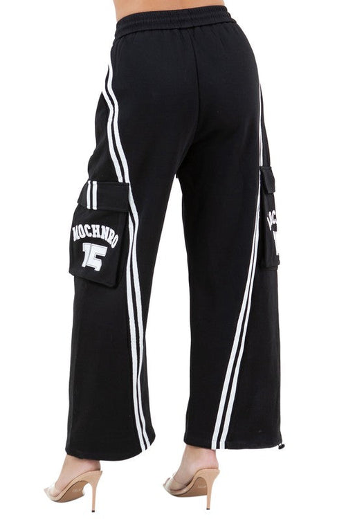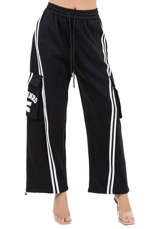 Details-casual wide-leg pants, Elastic/drawstring waist, Side-seam pockets, cargo style